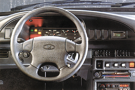 Панель приборов получила новый облик. Овальная, более пластичная, с мягкими формами накладка а также рулевое колесо преобразили устаревшую консоль и в целом интерьер обычного ВАЗ 2109. Слева и справа от комбинации приборов удобно расположили клавиши управления наружным освещением, противотуманными фарами и электроподогревом передних сидений. Все – с приятной зеленой подсветкой. Часы в центре панели также были приятной мелочью.